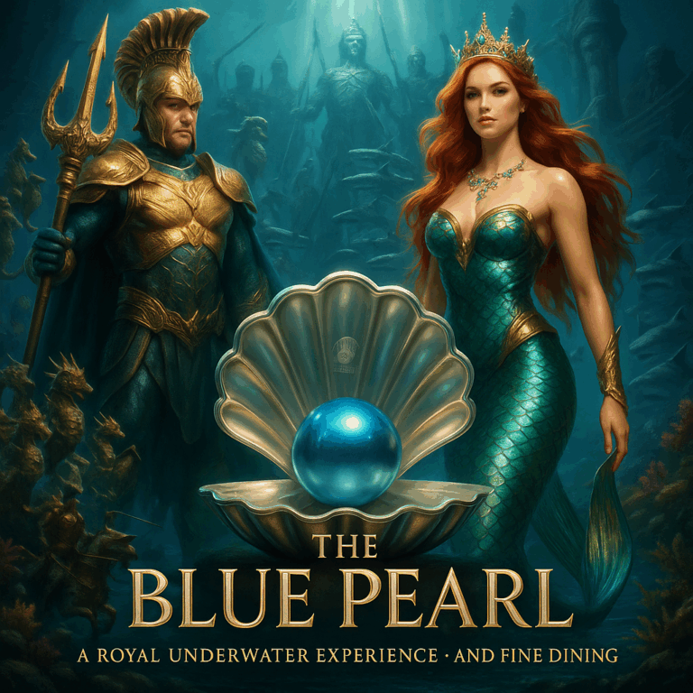 The Blue Pearl Berlin – Fine Dining im Nikolaiviertel. Restaurant und Eventgastronomie – Herzlich willkommen. Vielleicht bist du bereit, Außergewöhnliches zu erleben? Dann tritt näher und lass dich verführen, denn hier beginnt eine Geschichte, die weit über das hinausgeht, was du bisher kanntest. Du bist nicht nur Gast – du bist der Hauptcharakter einer Nacht voller Fantasie, Eleganz und Sinnlichkeit, die Berlin in seiner schönsten, verführerischsten Form zeigt. Stell dir vor, du betrittst einen Ort, an dem Lichtwellen über goldene Decken tanzen und leuchtende Korallen unter deinen Füßen funkeln. Klänge, die zart an den Wänden entlanggleiten, verweben sich mit dem Duft von Vanille und Meersalz in der Luft. Jeder Schritt ist wie ein sanfter Tauchgang in einen königlichen Unterwasserpalast –